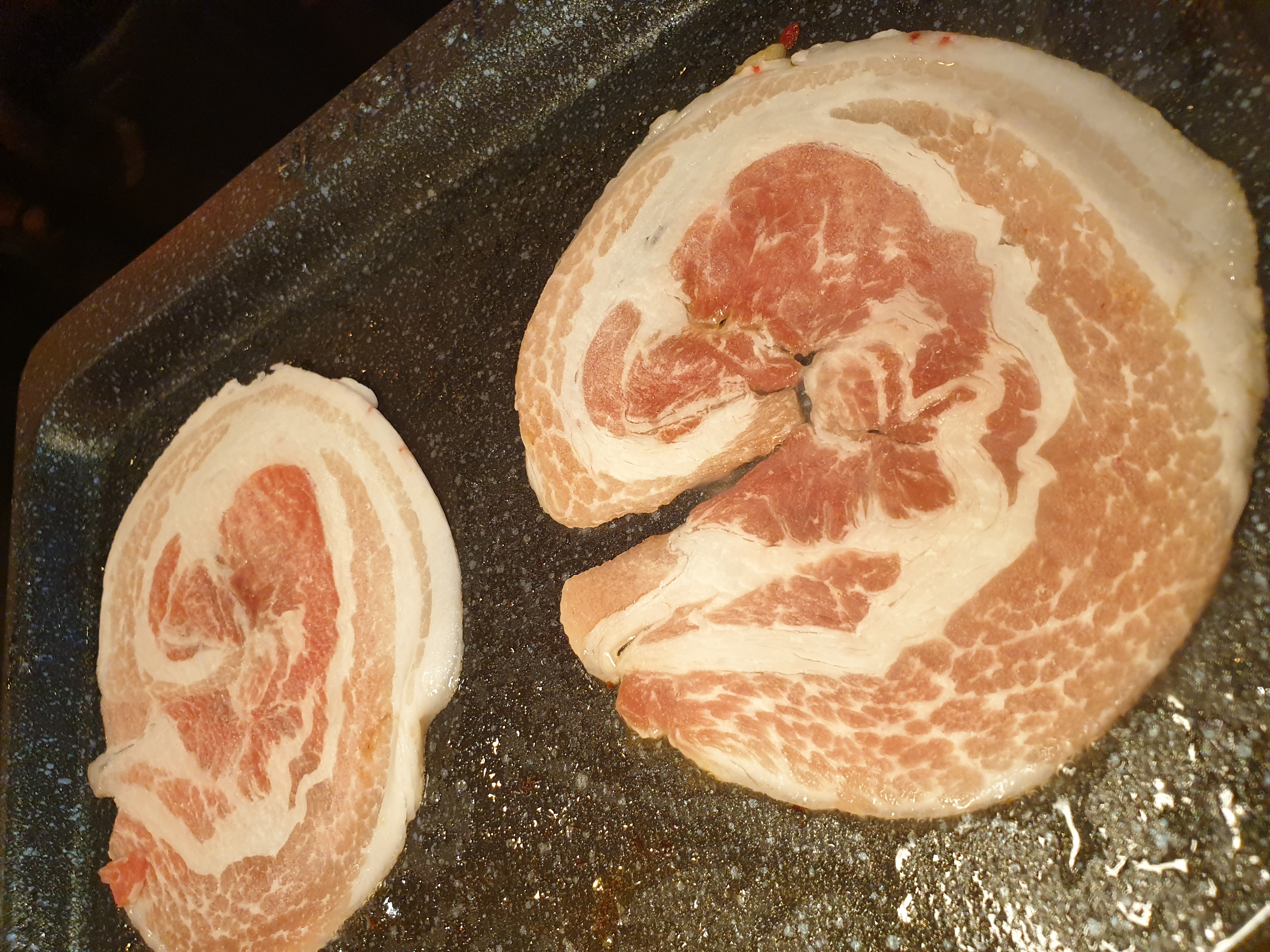 냉동 삼겹살은 얇게 썰어 급속 냉동하기 때문에 해동 과정 없이 바로 구워도 식감이 좋습니다
