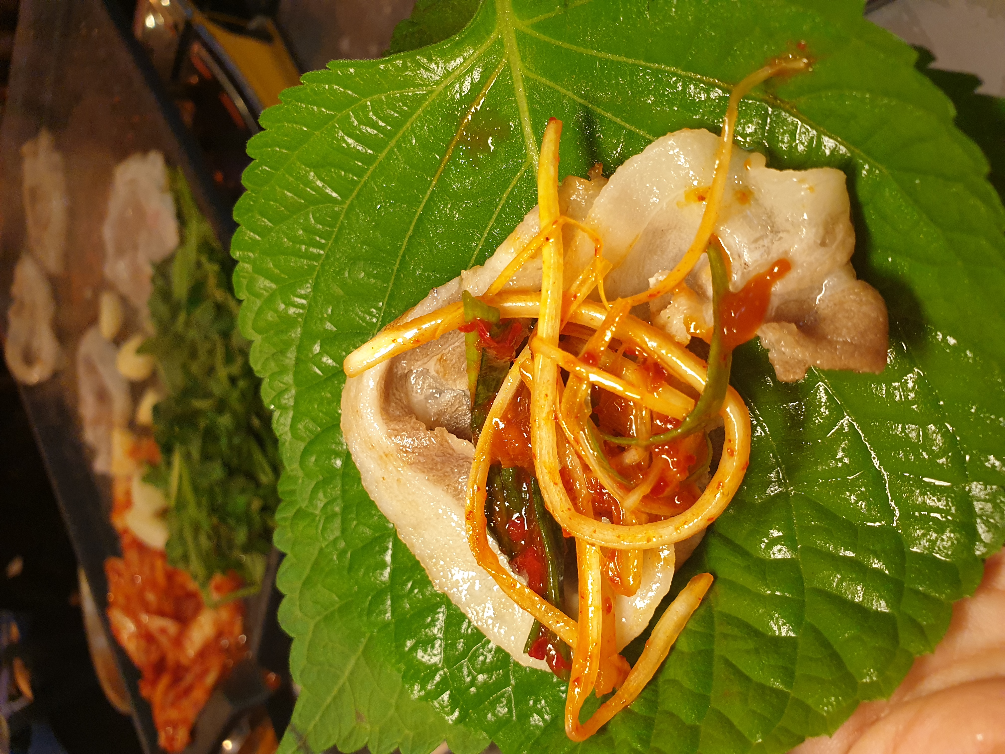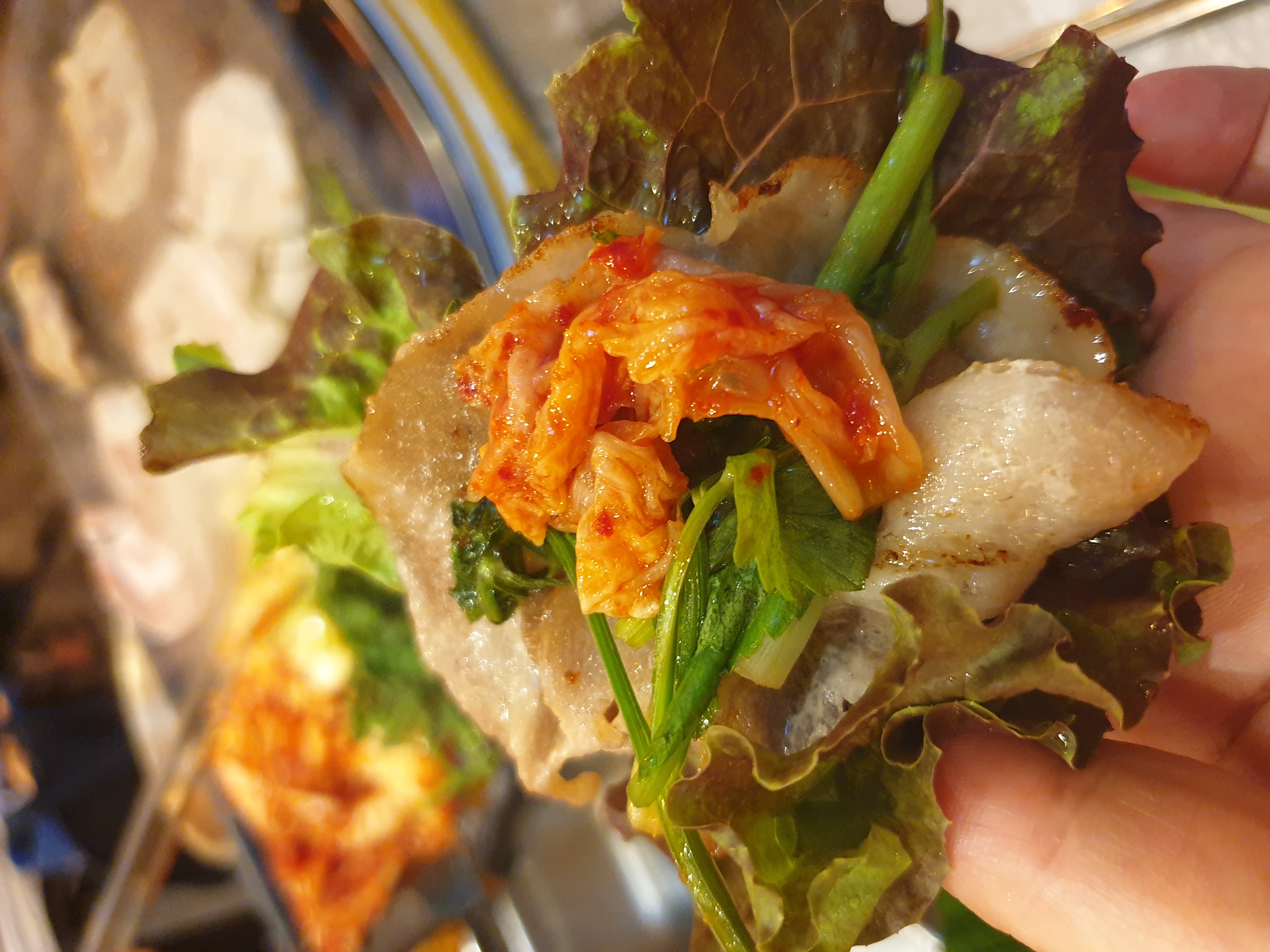 냉동 삼겹살과 가장 잘 어울리는 것은 쌈 채소와 마늘입니다