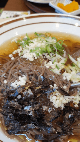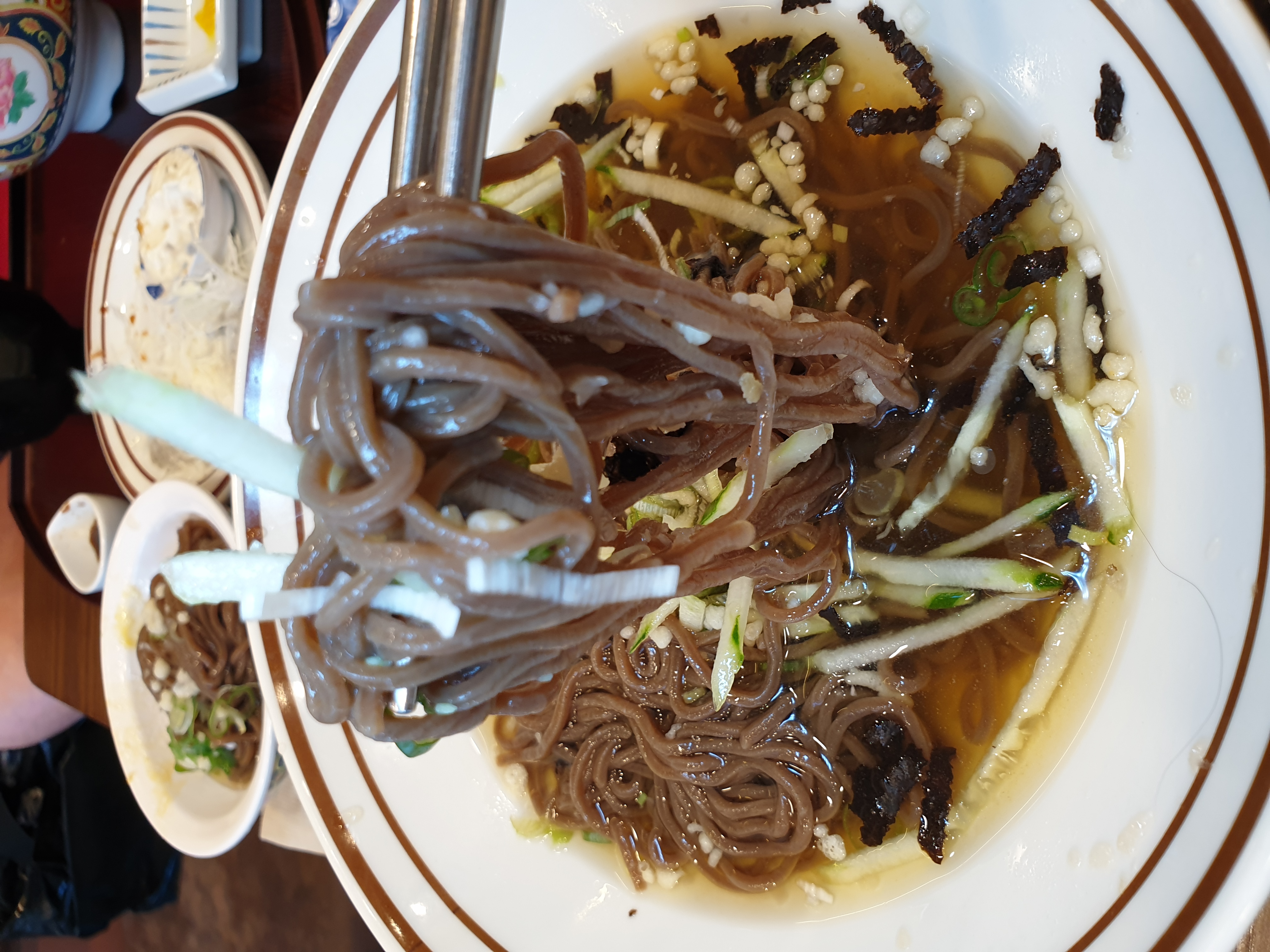 국물에 적셔진 면을 한 입 크게 떠먹으면 시원함과 메밀의 향이 입안 가득 퍼집니다