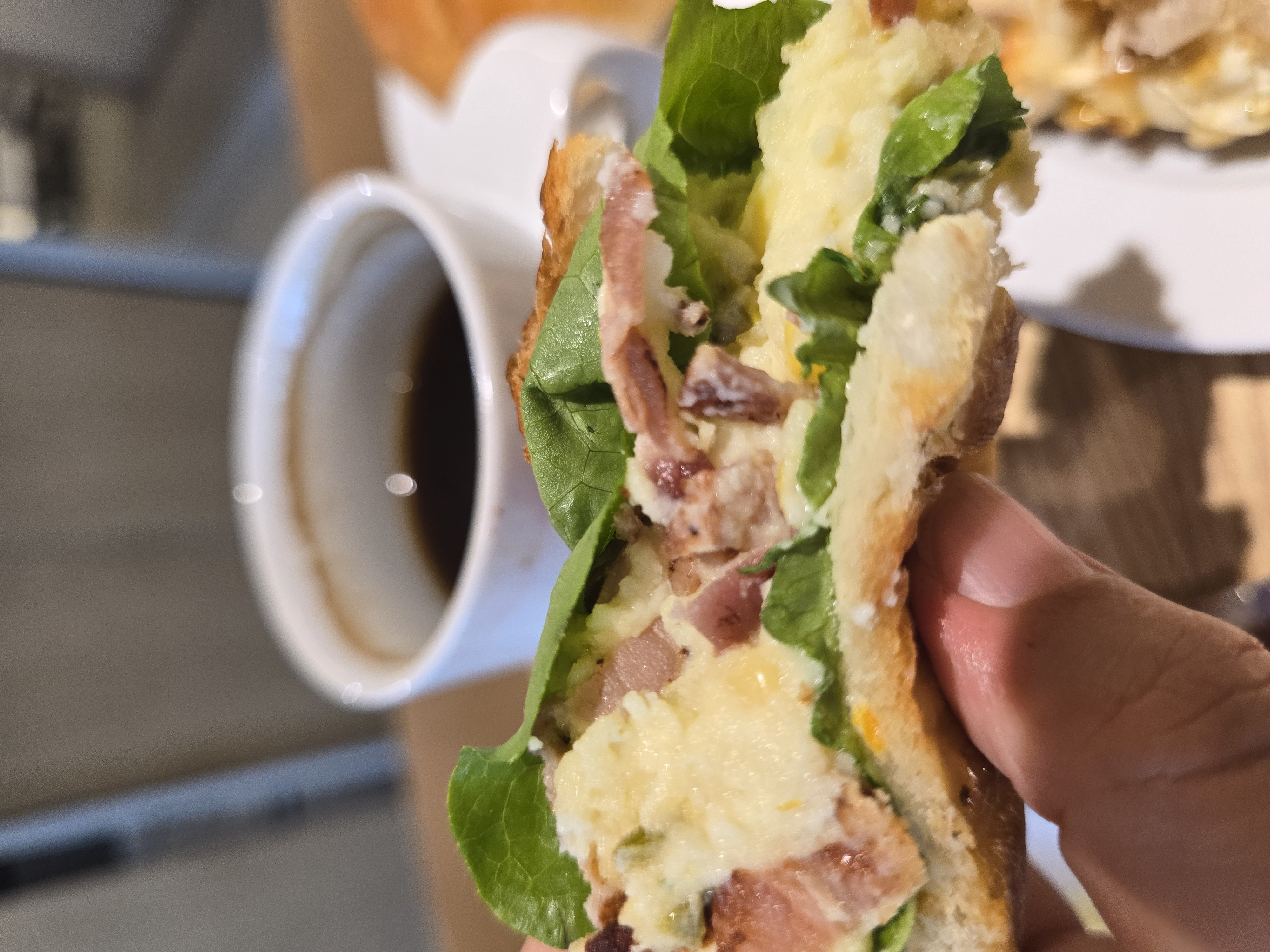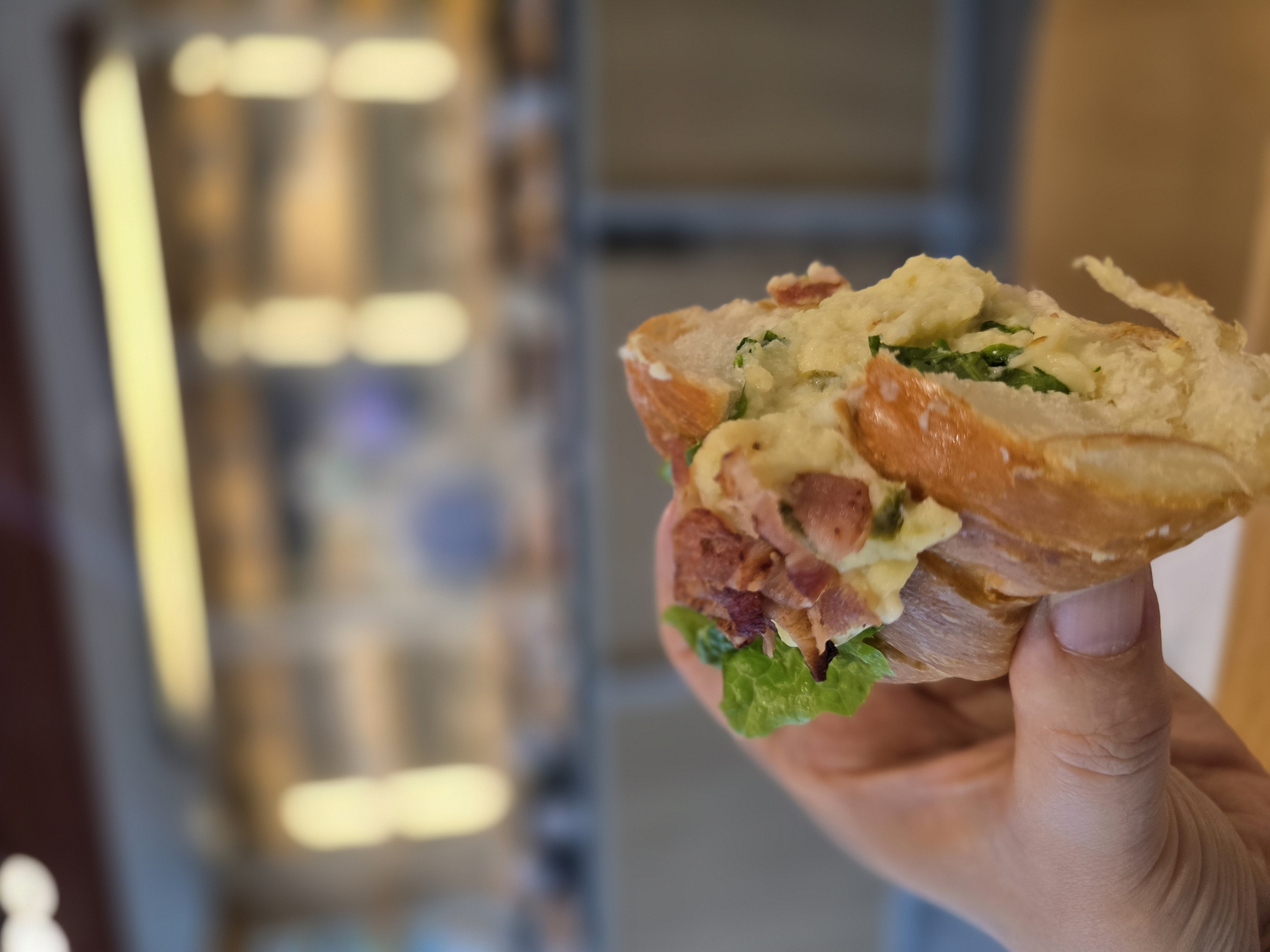 짭조름한 베이컨이 먼저 입안에서 터지며 고소한 치즈가 부드럽게 감싸줍니다. 치즈는 구워지는 과정에서 적당히 늘어지며 쫀득한 식감을 더해주고, 베이컨의 풍미와 어울려 깊은 맛을 냅니다. 치즈 덕분에 빵 자체가 촉촉하게 유지되어 식감 밸런스가 뛰어납니다.