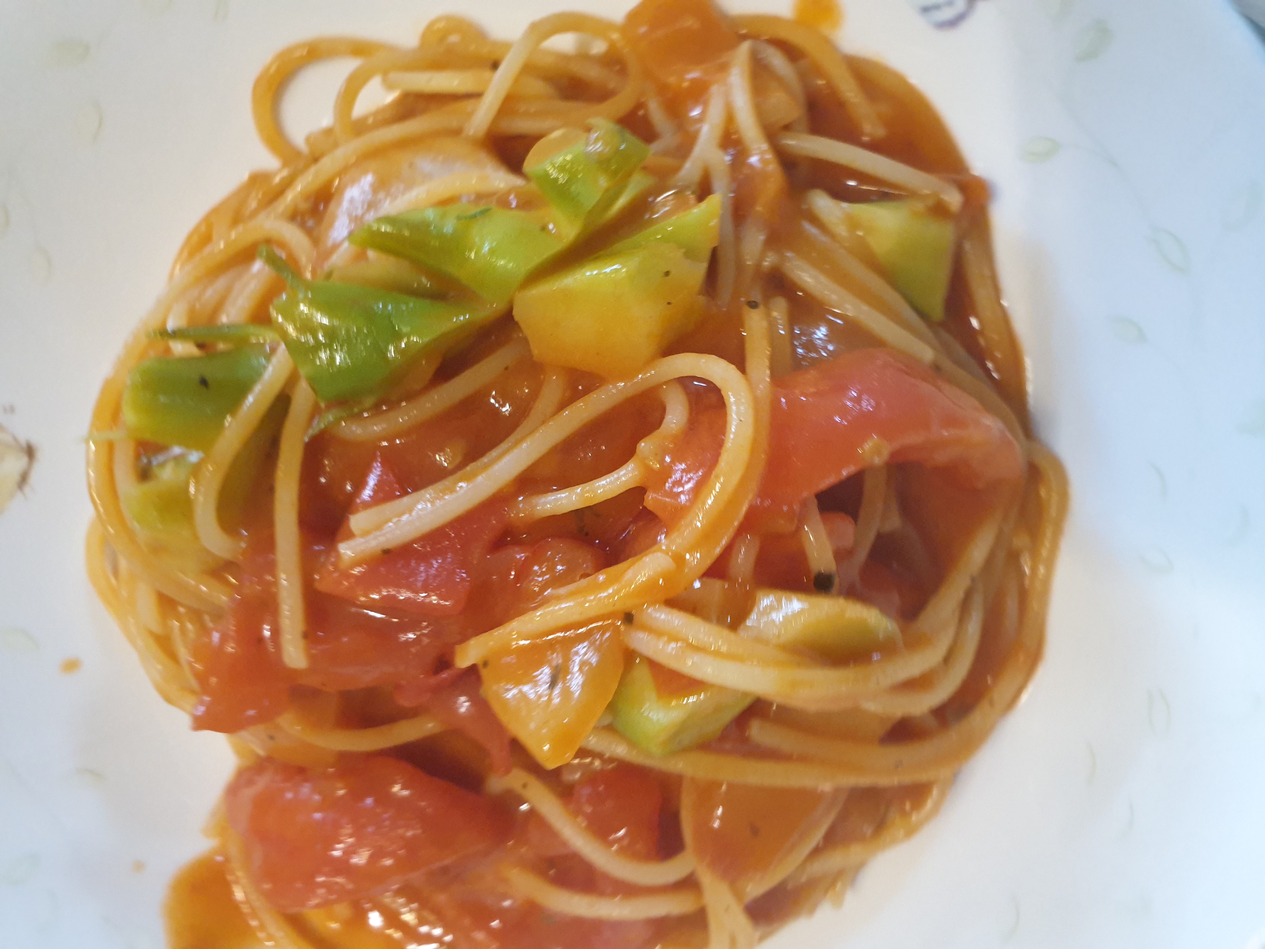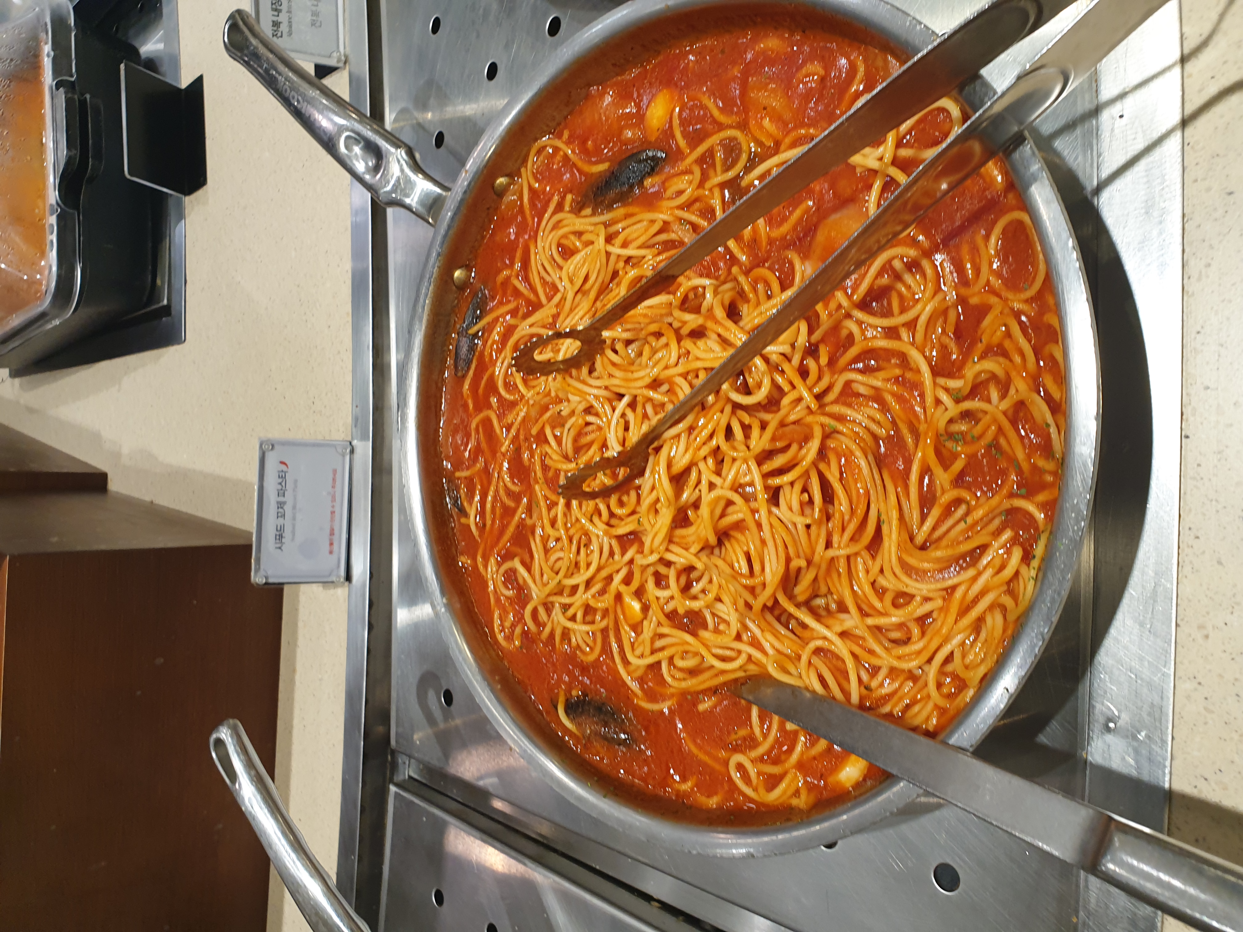 파스타 양을 절반으로 줄이고 샐러드와 곁들여 먹기