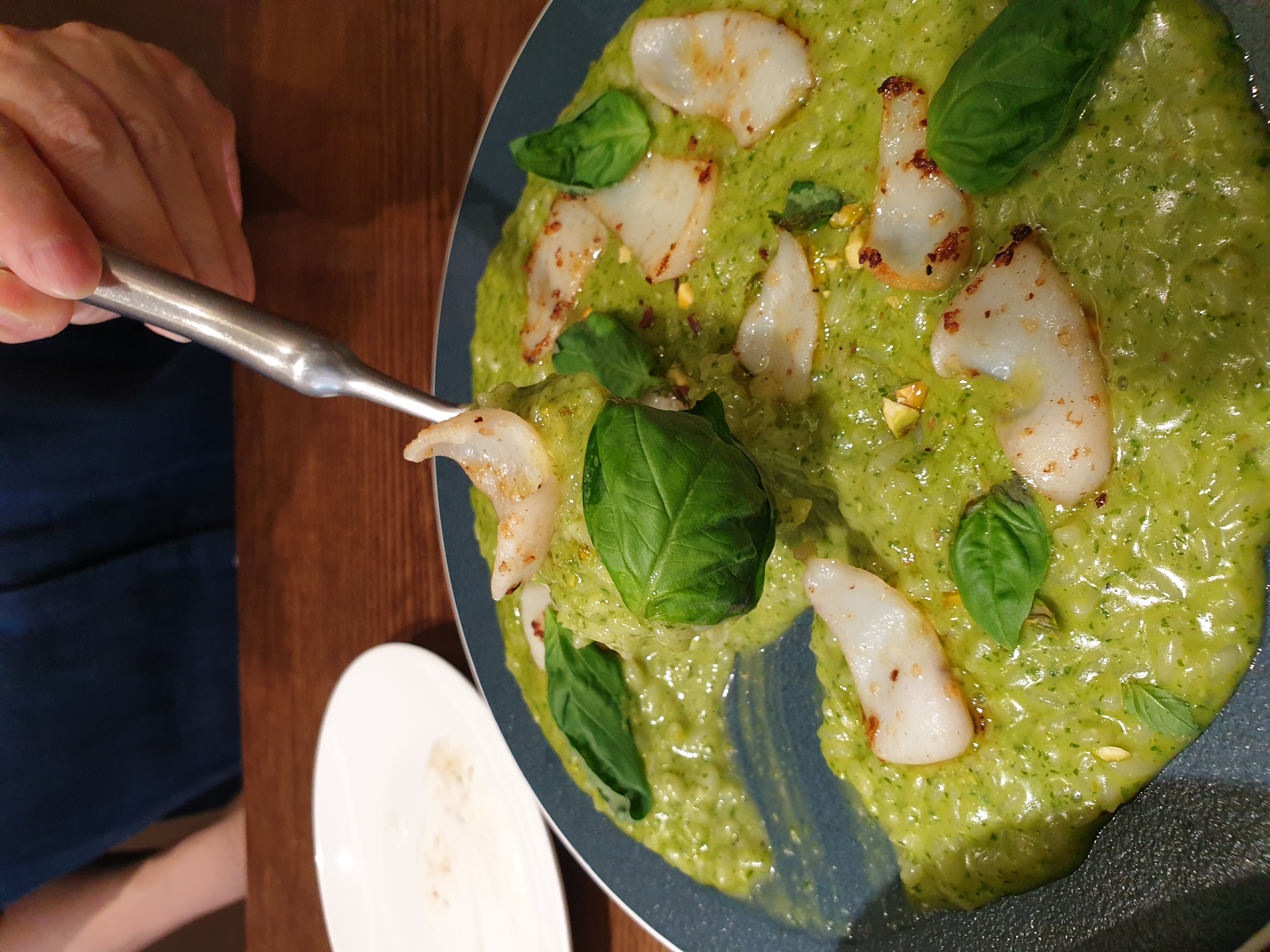 바질 리조또는 기본적으로 쌀과 바질 페스토, 올리브오일, 치즈, 크림을 넣어 조리합니다. 바질 페스토 자체는 비교적 칼로리가 낮지만 치즈와 크림, 올리브오일이 들어가기 때문에 전체 칼로리가 높아지는 편입니다. 특히 파르메산 치즈와 생크림을 넉넉히 사용하는 레시피라면 열량이 더 높아질 수 있습니다.