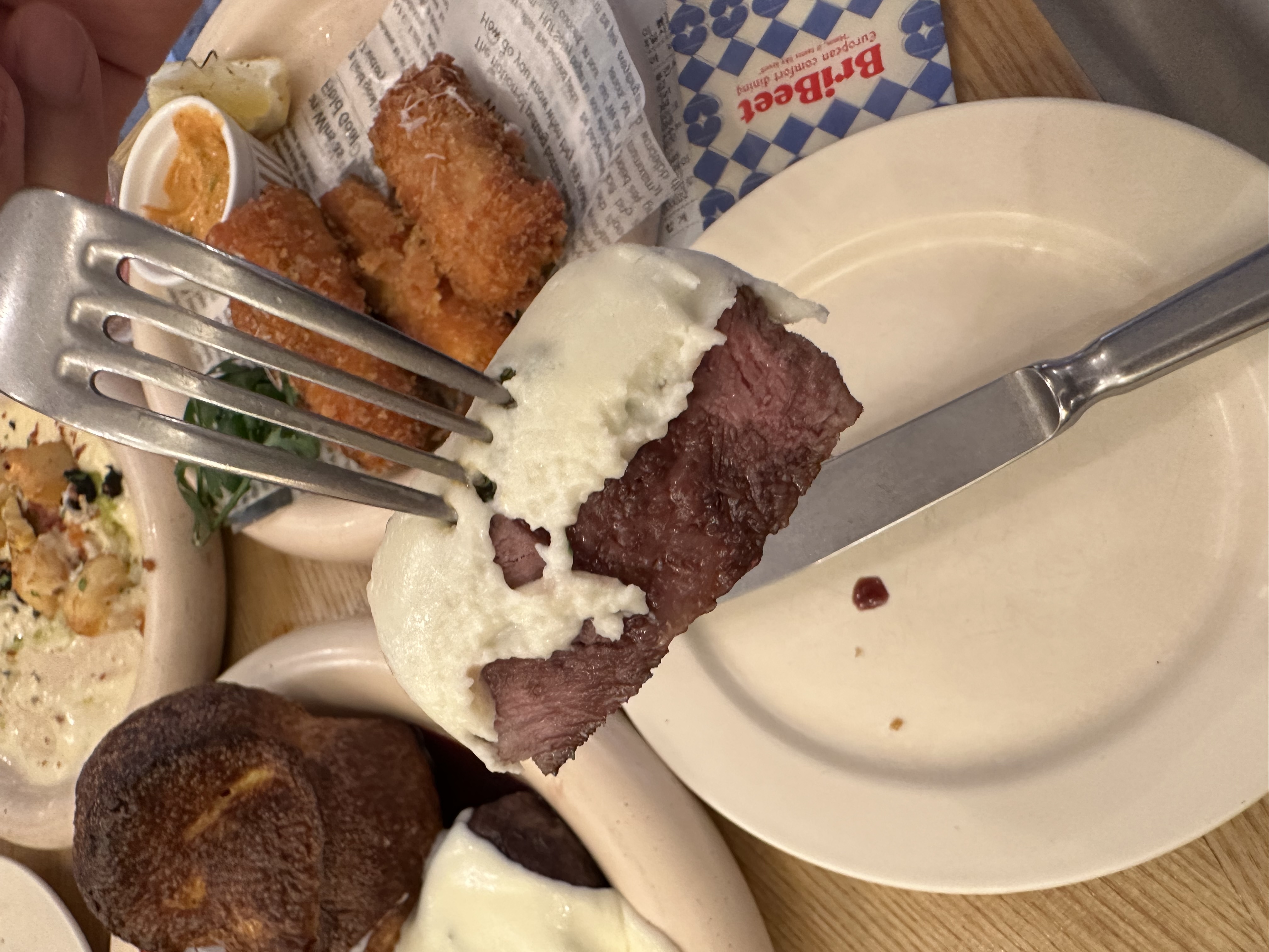 브리비트 스테이크는 보통 200g 이상 제공되는 경우가 많습니다