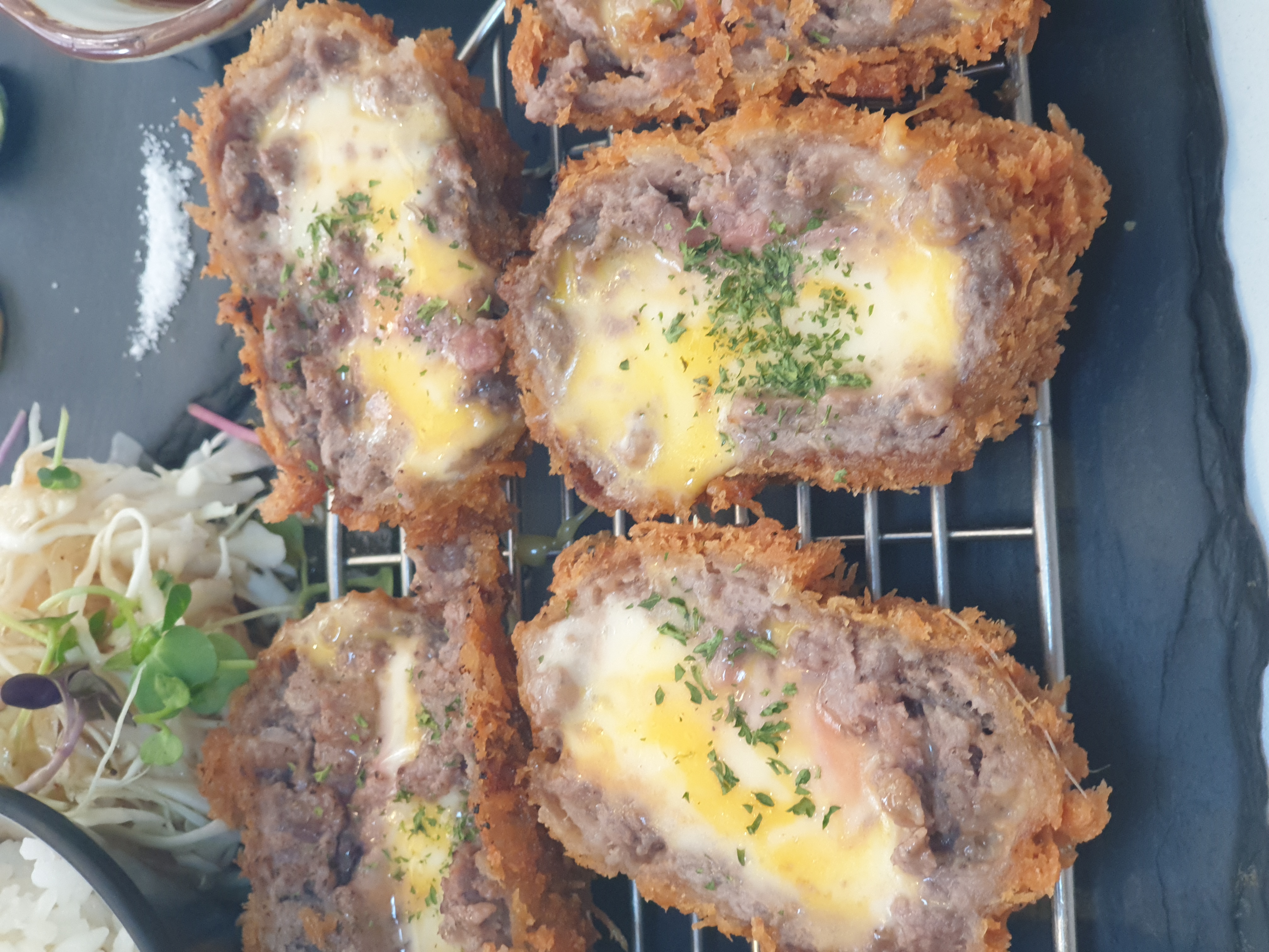 겉은 바삭하고 속은 촉촉한 튀김의 식감이 뛰어나며 고소한 치즈가 소고기와 잘 어울립니다