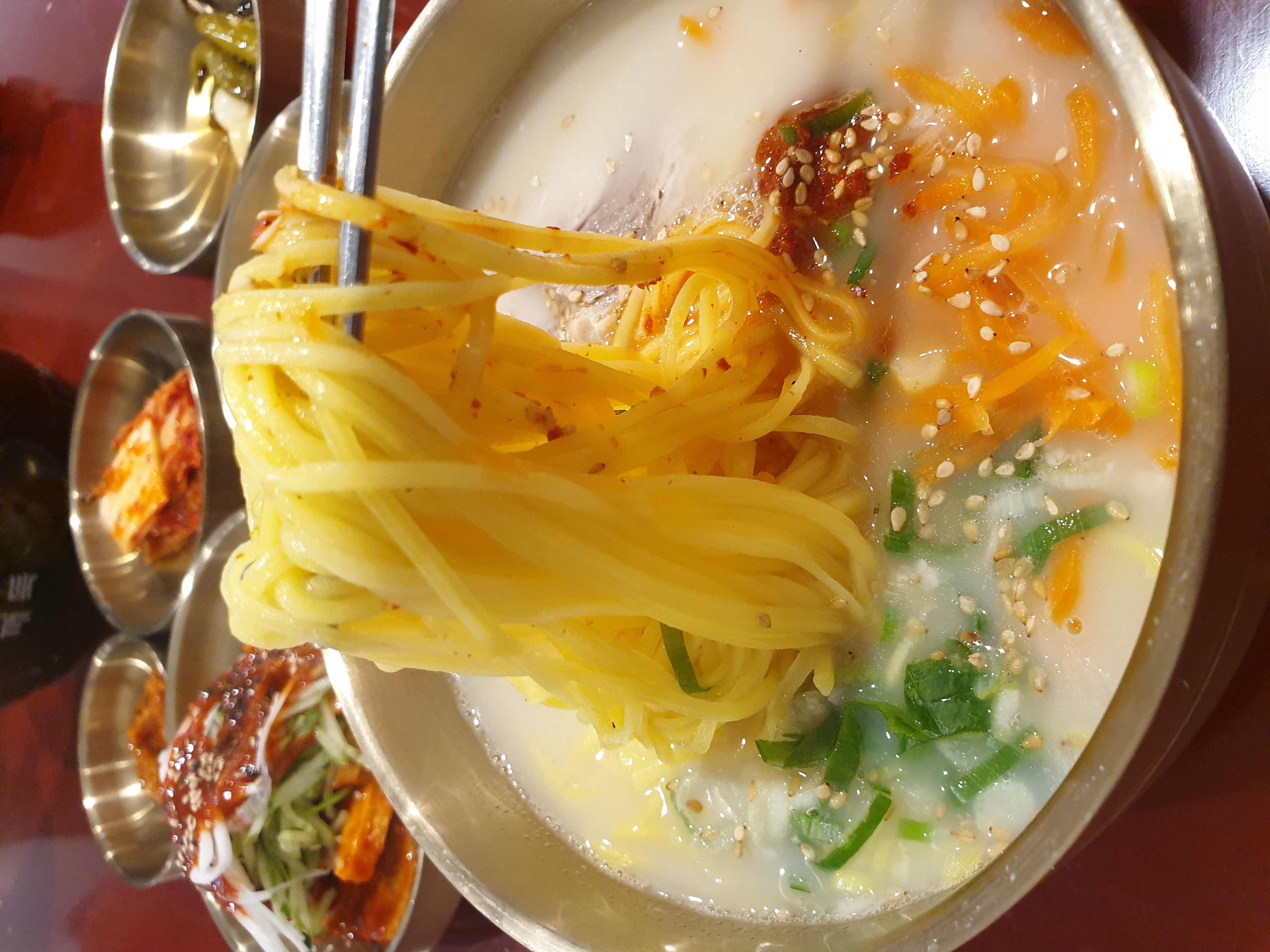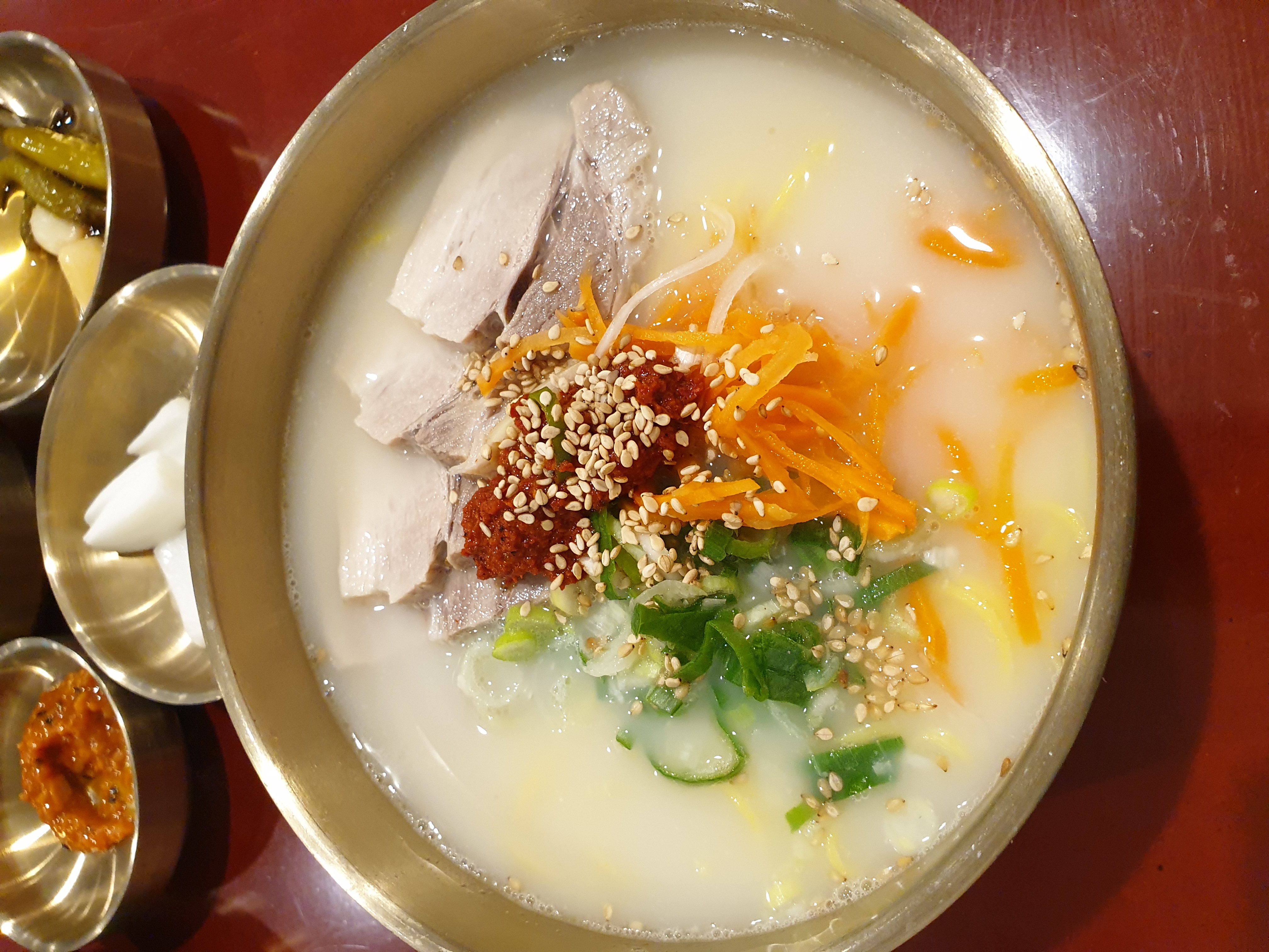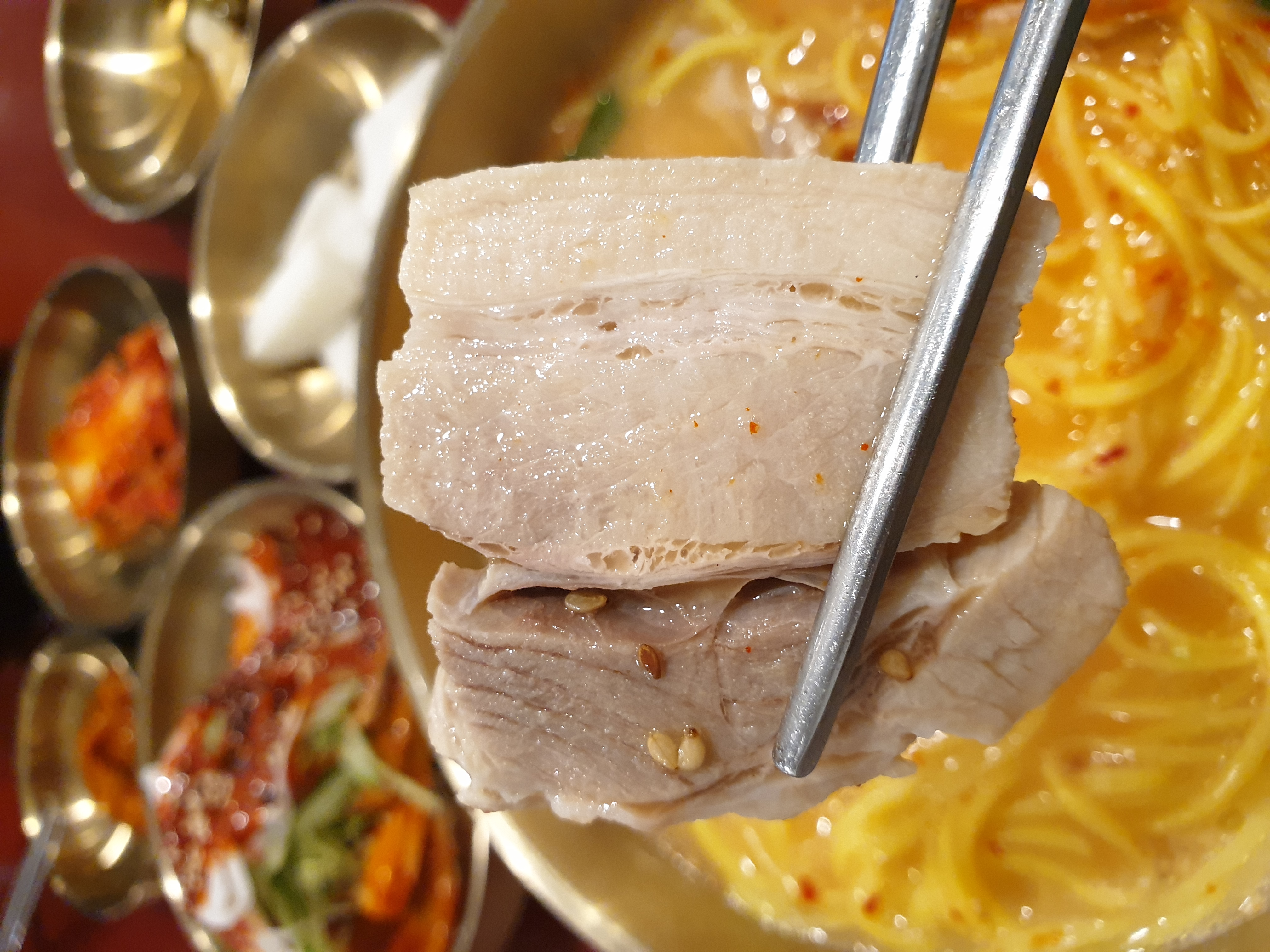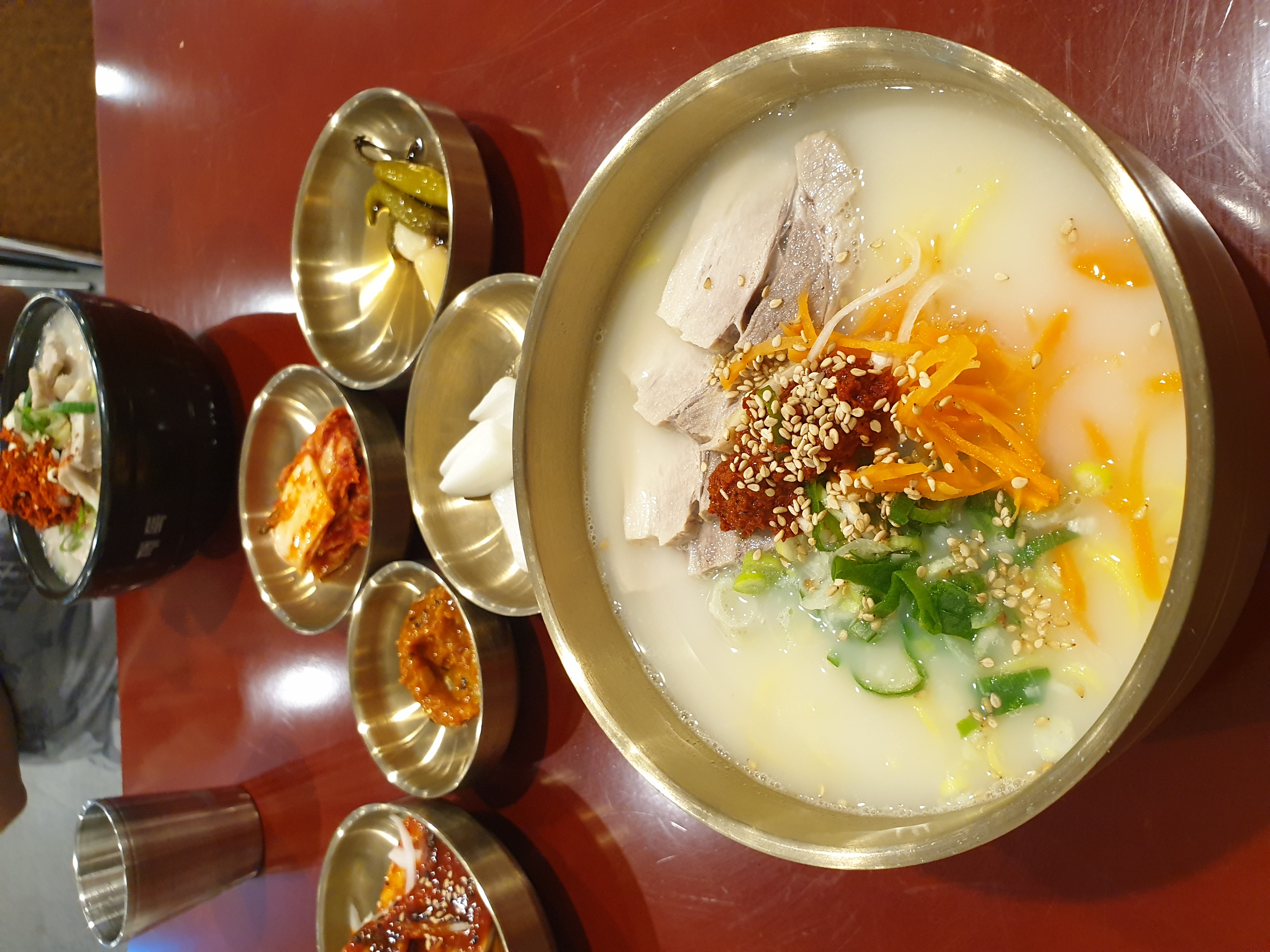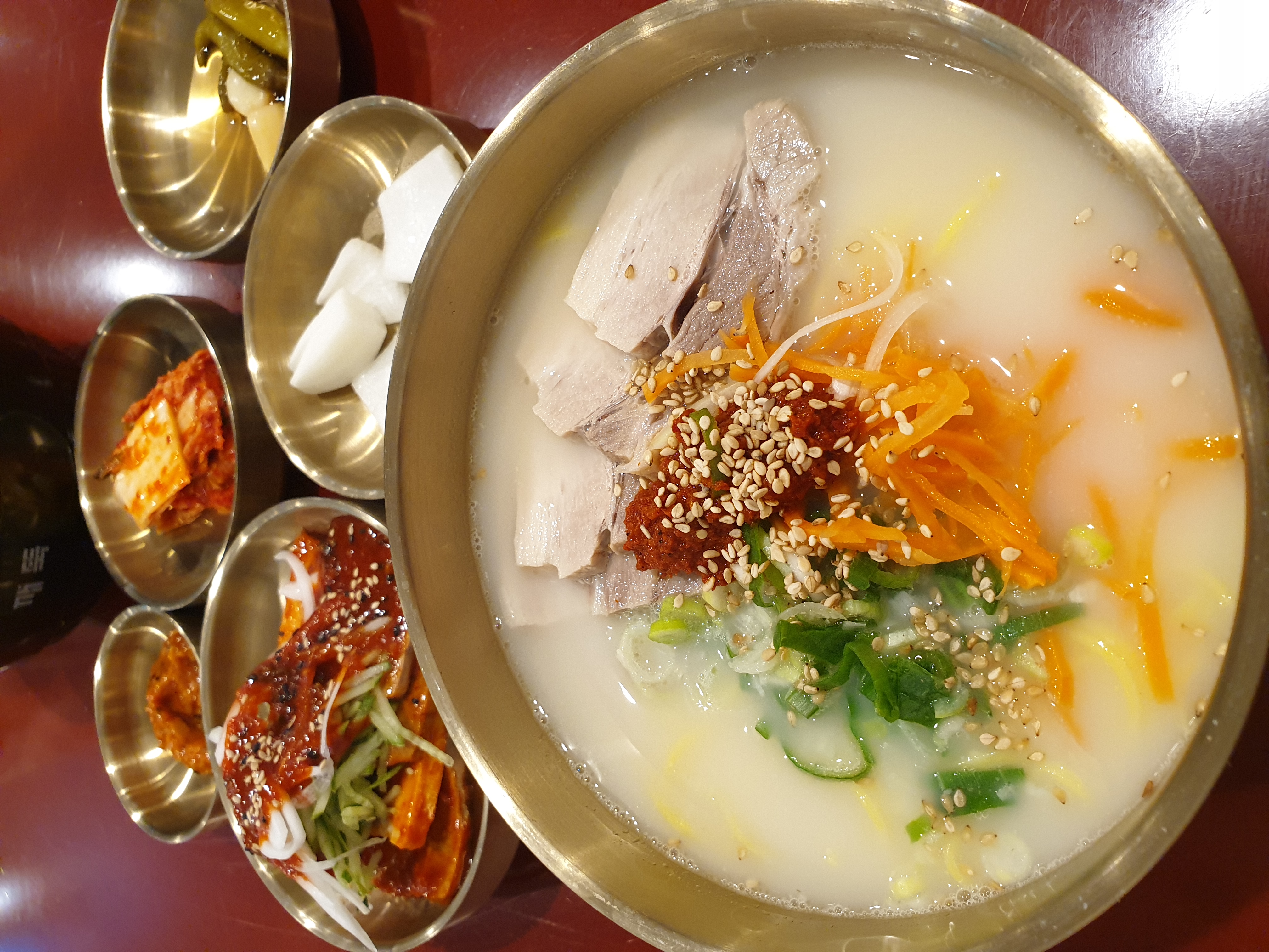 돼지사골 육수에는 단백질과 칼슘, 미네랄이 풍부해 에너지 보충에 좋습니다. 고명으로 올라가는 돼지고기 수육은 단백질이 풍부해 포만감을 주지만 지방 함량이 있으므로 양 조절이 필요합니다.